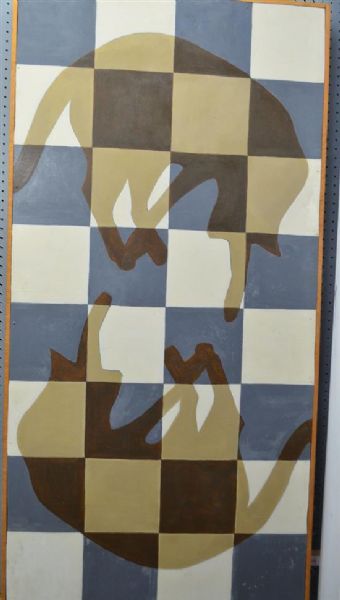 Two cats on lino