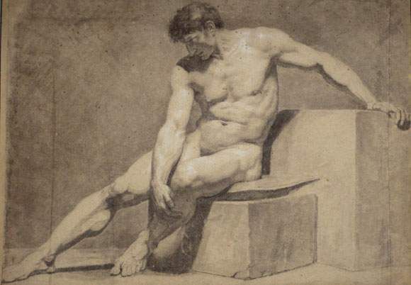 | Académie d'homme assis, le bras posé sur un bloc de pierre | |