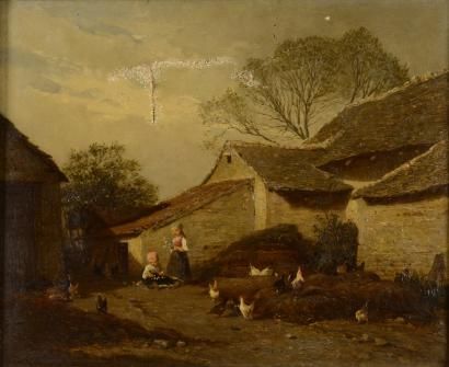 Enfants dans une basse-cour