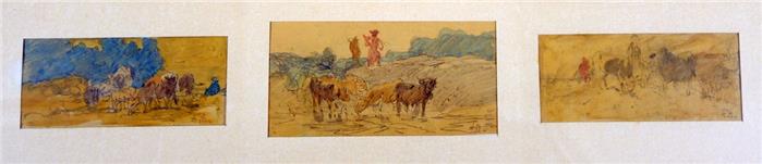 3 Landschaftansichten mit Viehbestand und Bauern