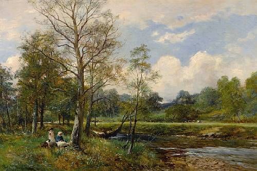 | An extensive landscape with falconers resting beside a country path in the foreground, a mountainous coast beyond | |