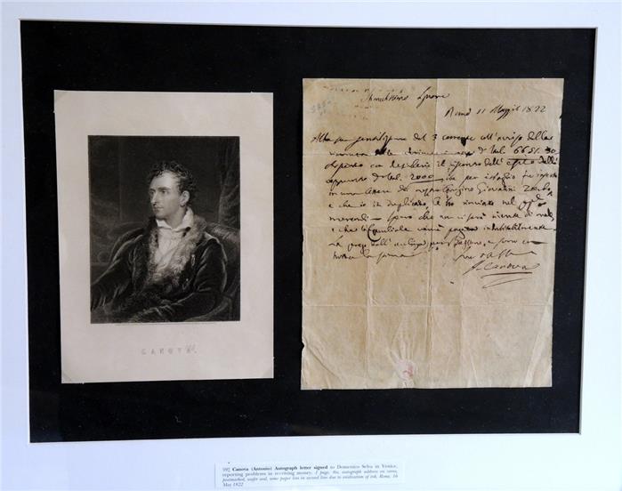 | Handgeschriebener Brief von Canova für den Herrn Domenico Selva aus Venedig, um eine Bezahlung zu fördern | |