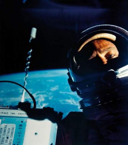 L'astronaute Edwin Aldrin à l'extérieur du module dans l'espace,12 novembre