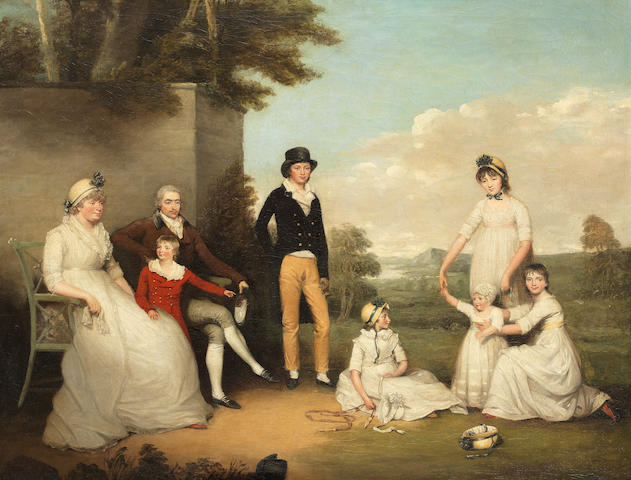 | A group portrait, traditionally identified as the Peacock family, in a landscape | |