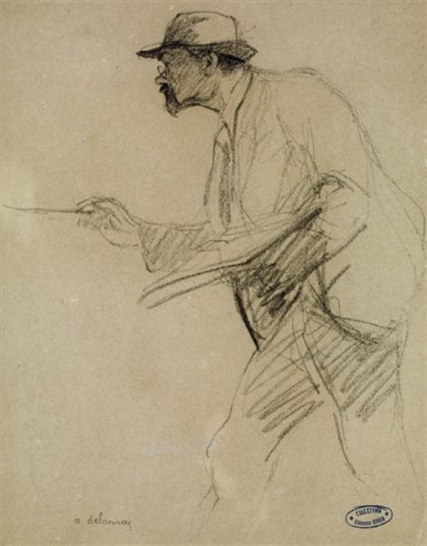 Portrait de Maximilien Luce de profil le pinceau à la main