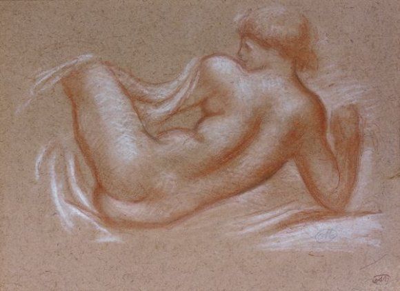 Etude de femme nue allongée vue de dos
