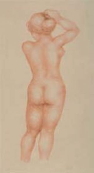 | Femme nue de dos, bras droit relevé au-dessus de la tête | |