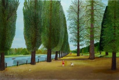 Rivière et allée de peupliers