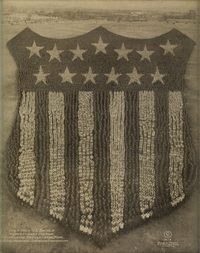 | The Human U.S. Shield, 30,000 Officers and Men, Camp Custer, Battle Creek, Mich., Brig. Gen. Howard L. Laubach Commanding | |