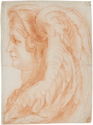 | Chalk and light brown wash, heightened with white, executed on three sheets, pen and brown ink framing lines, fragmentary fleur-de-lys watermark | |