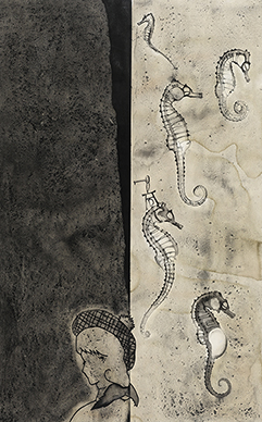 | Watercolor and charcoal on paper | |