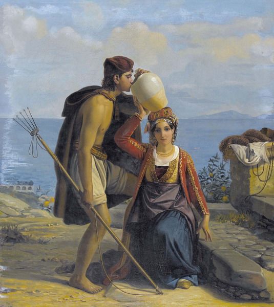 Jeune fille de Procida donnant à boire à un pêcheur.