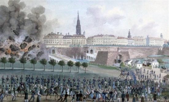 | Die Franzofen Sprengen Einen Grossen Theil der Festungs Werke in Wien | |