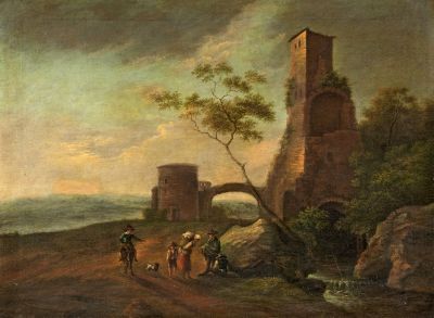Italian Landscape with Travellers in Front of a Ruin