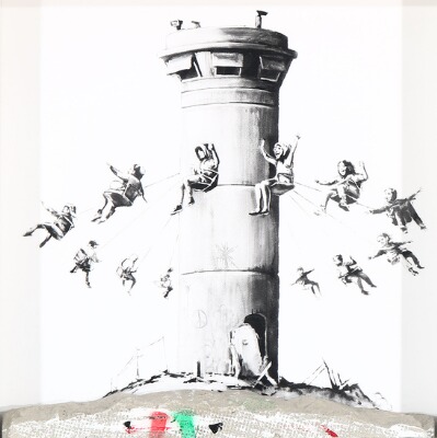 | Offset litograph and spray painted fragment from the wall between Israel og Palestina | |