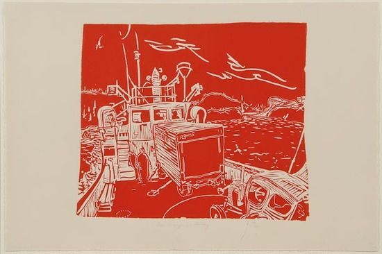 Linocut printed in colours