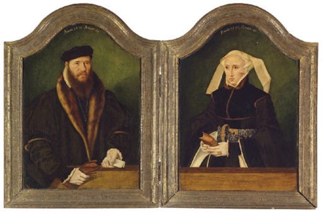 | A diptych: Portrait of a gentleman, half-length, in a fur-lined coat, with leather gloves and a letter in his hand; and Portrait | |