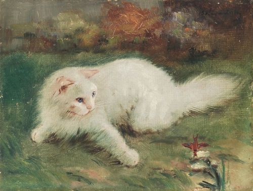 Weiße Perserkatze und Falter