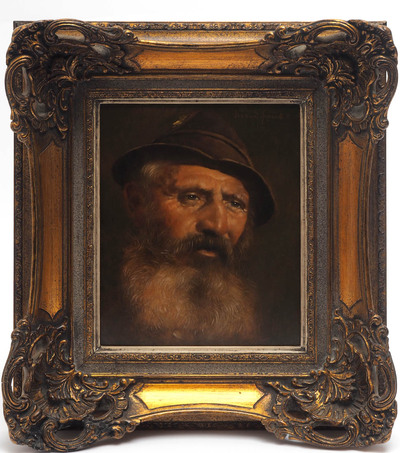 Portrait eines bärtigen, alten Mannes mit Tiroler Hut