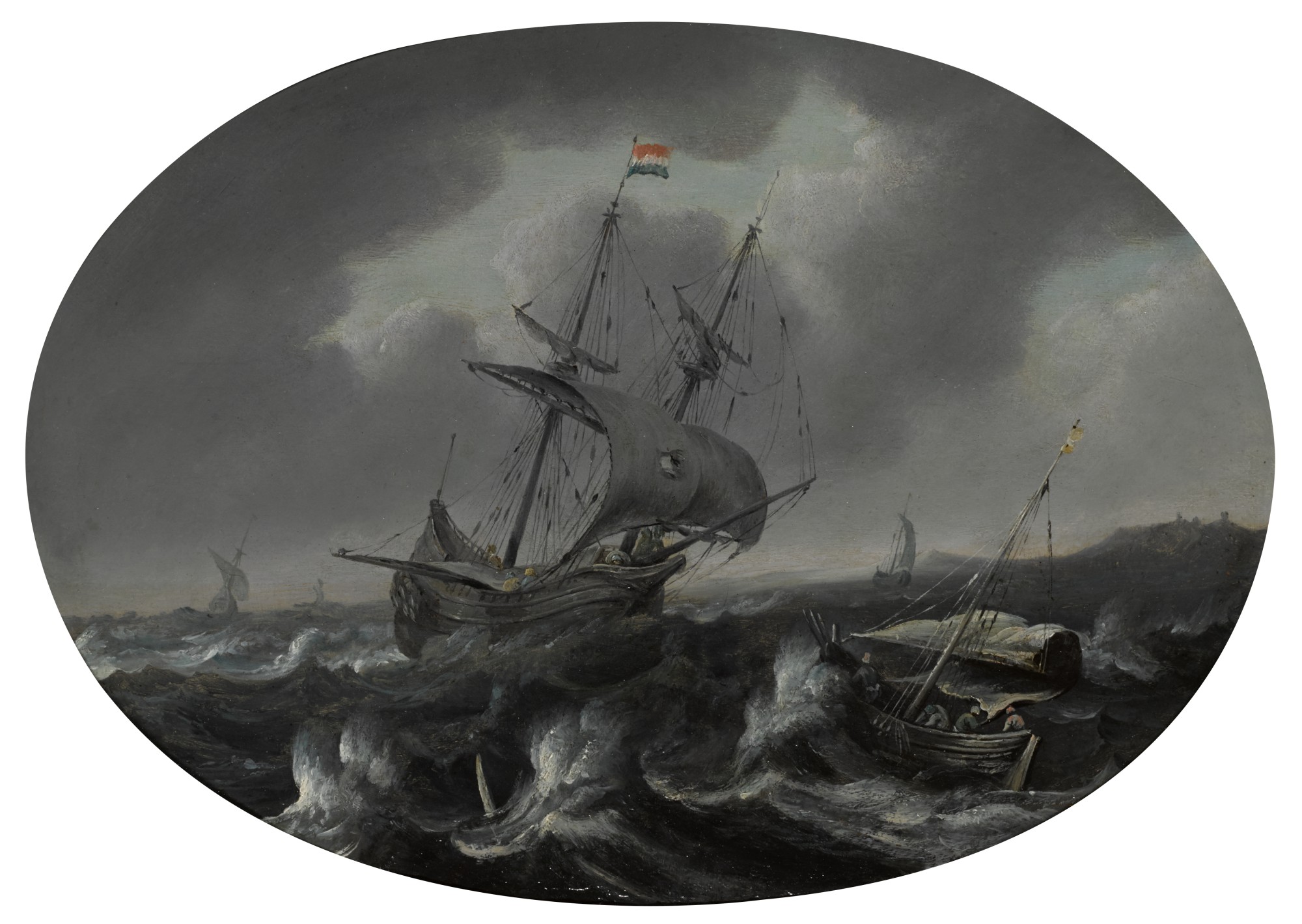 | A MERCHANTMAN AND OTHER SAILING VESSELS IN A STORM NEAR A COAST | |