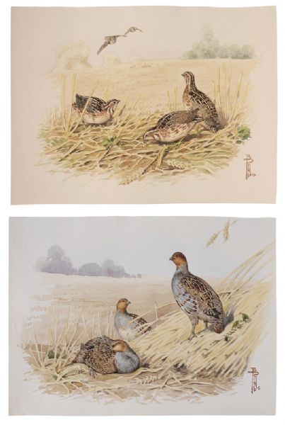 Two Landscapes: Quail, Gray Partridges