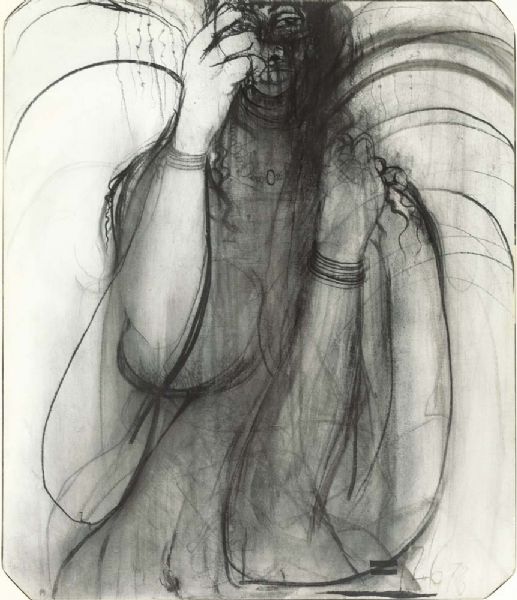| Charcoal and watercolour on canvas on board | |
