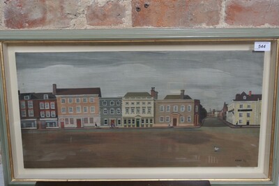 Oil on Polymer on Gesso panel Tuesday Market, South Kings Lynn by Brian Lewis 1993 - 30cm x 60cm - under glass in a painted frame | |