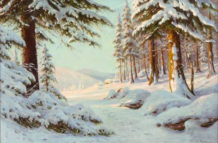 Winterliche, sonnig beleuchtete Waldlandschaft mit weitem Blick