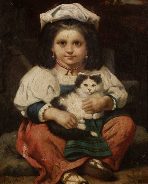 A little girl holding a cat