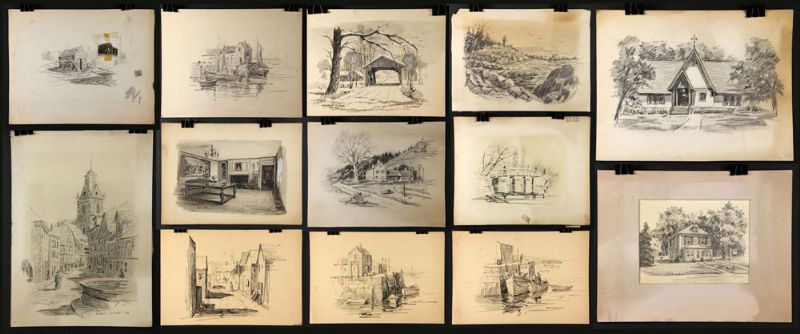 Lot of thirteen pencil drawings