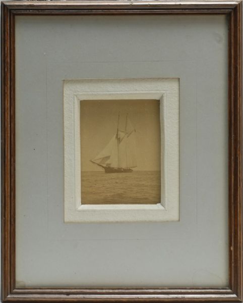 Depicting a two-masted schooner