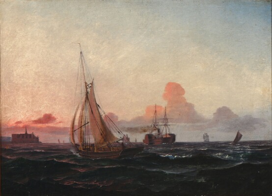 | Seascape off the coast of Elsinore Castle in the evening sun | |