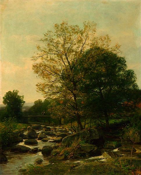 Landschaft mit Bach und Brücke