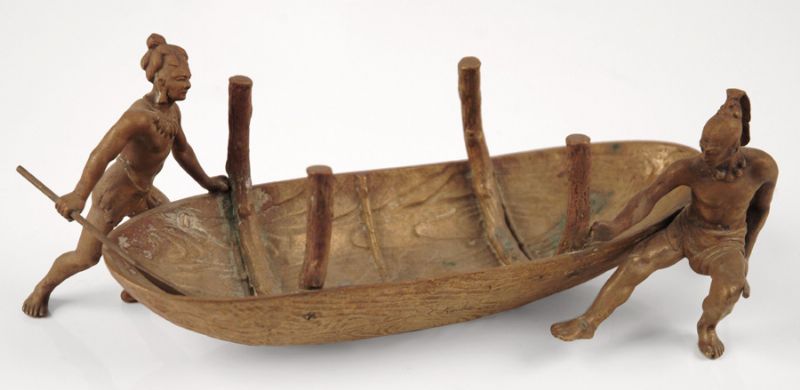 TWO NATIVE AMERICANS WITH A CANOE