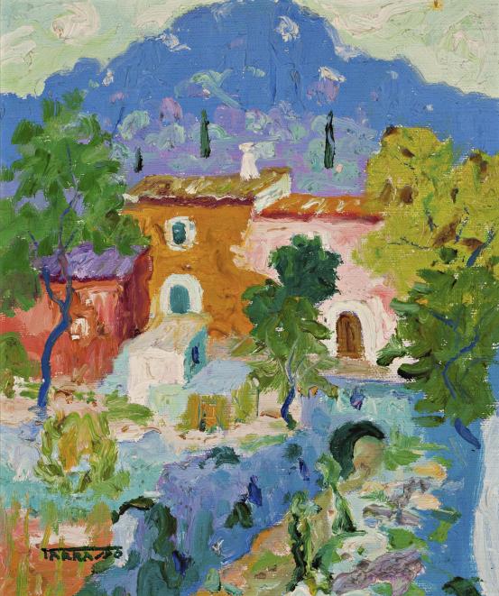 Vista de un pueblo, probablemente Deià