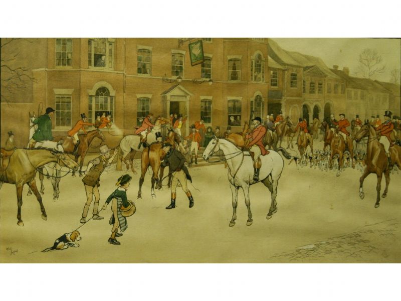 | The meet at the Swan (Hounds, Gentlemen Please), huntsmen gathering outside a public house before the hunt | |