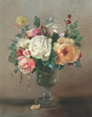 Still life of roses in a glass vase