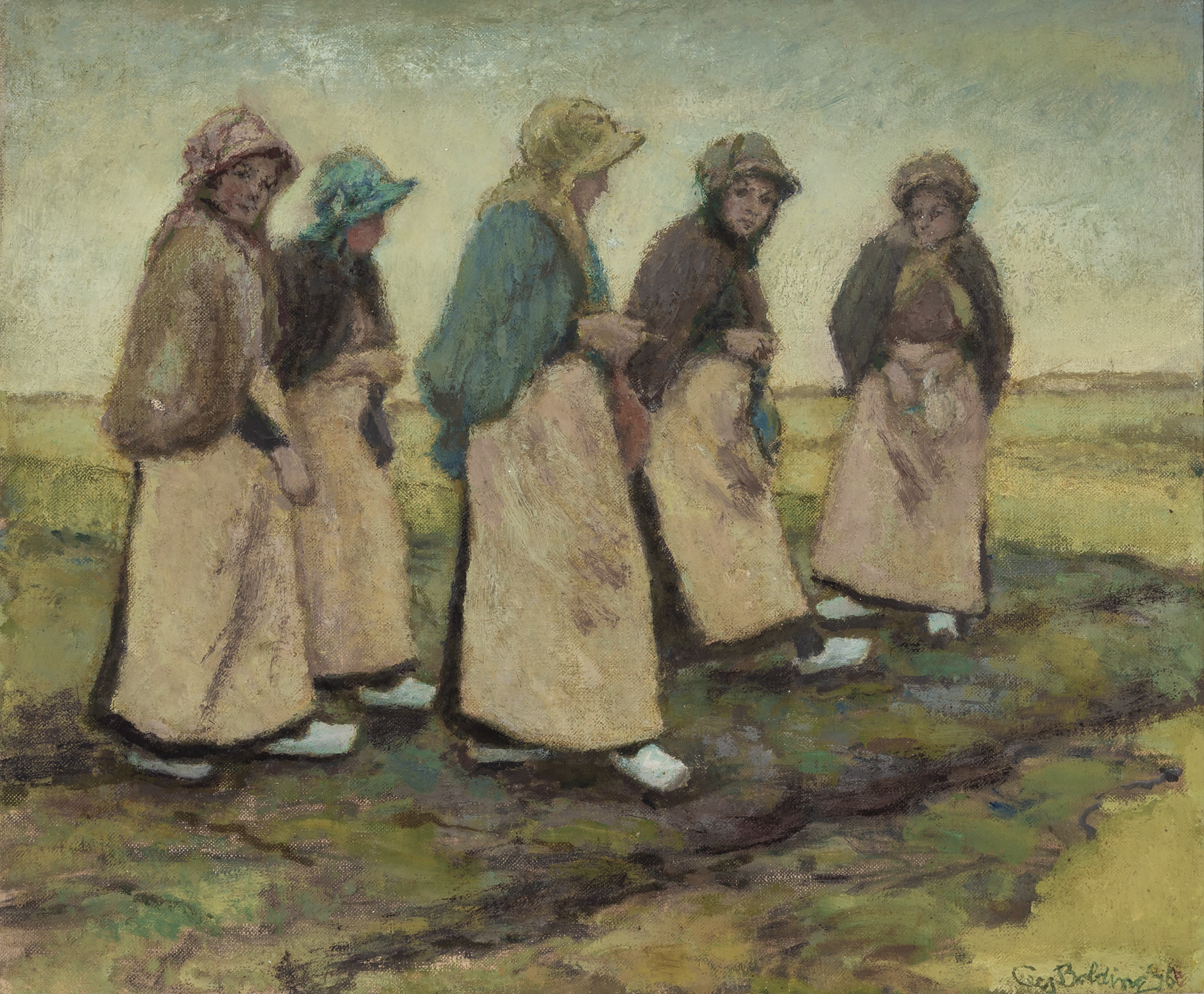 Scheveningse Nettenboetsters (Net Menders in Scheveningen) (1976) Signed and dated '76 lower right Oil on canvas laid down on panel, 37.1 x 45.1 cm Note: A Nettenboetster was a female worker who made or repaired fishing nets. It was typic | |