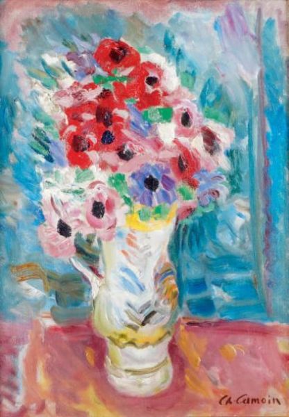 BOUQUET D'ANÉMONES DANS UN PICHET DE FAÏENCE