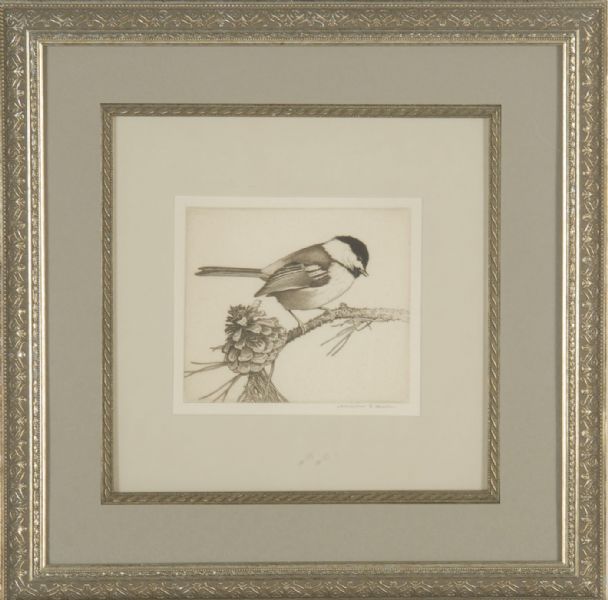 Chickadee on a pine bough.