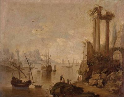 | Segelschiffe im Hafen mit Architekturcapriccio | |