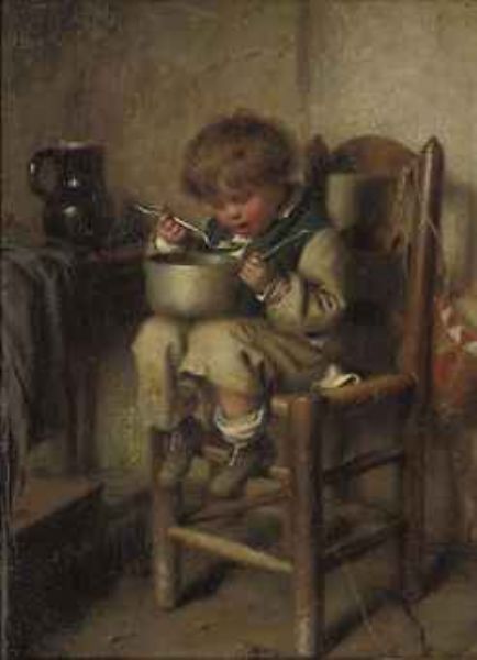 A boy eating porridge