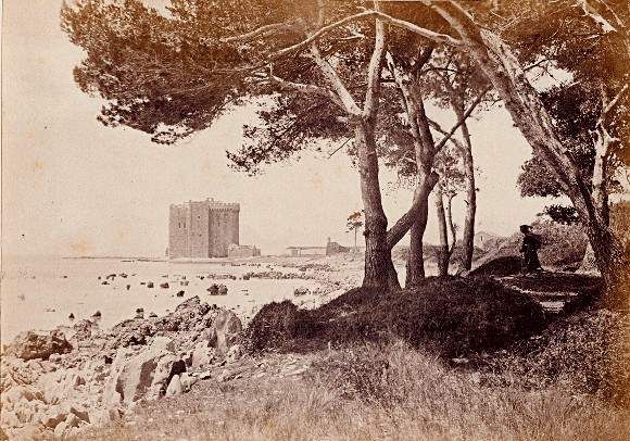 Ile Saint-Honorat. Pins et Donjon. Vers 1860.