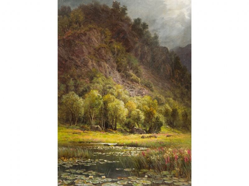 WATER LILIES and CATTLE IN A HIGHLAND LANDSCAPE
