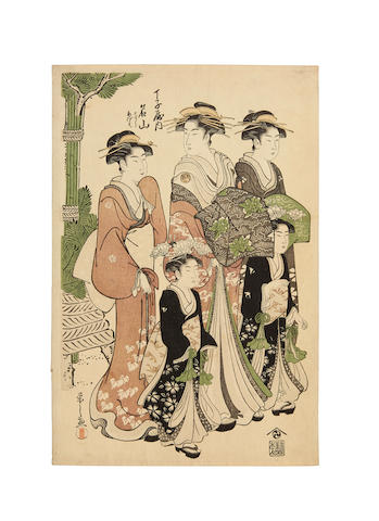 n oban tate-e print entitled Chojiya no uchi Meizan (Nayama) (Meizan of the Chojiya), published by Nishimuraya Yohachi (Eijudo) | |