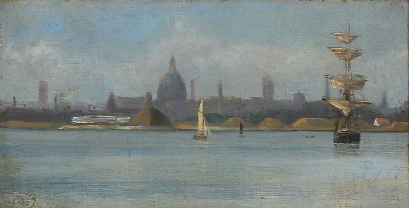| Scene from Copenhagen Harbour overlooking the Marble Church. | |