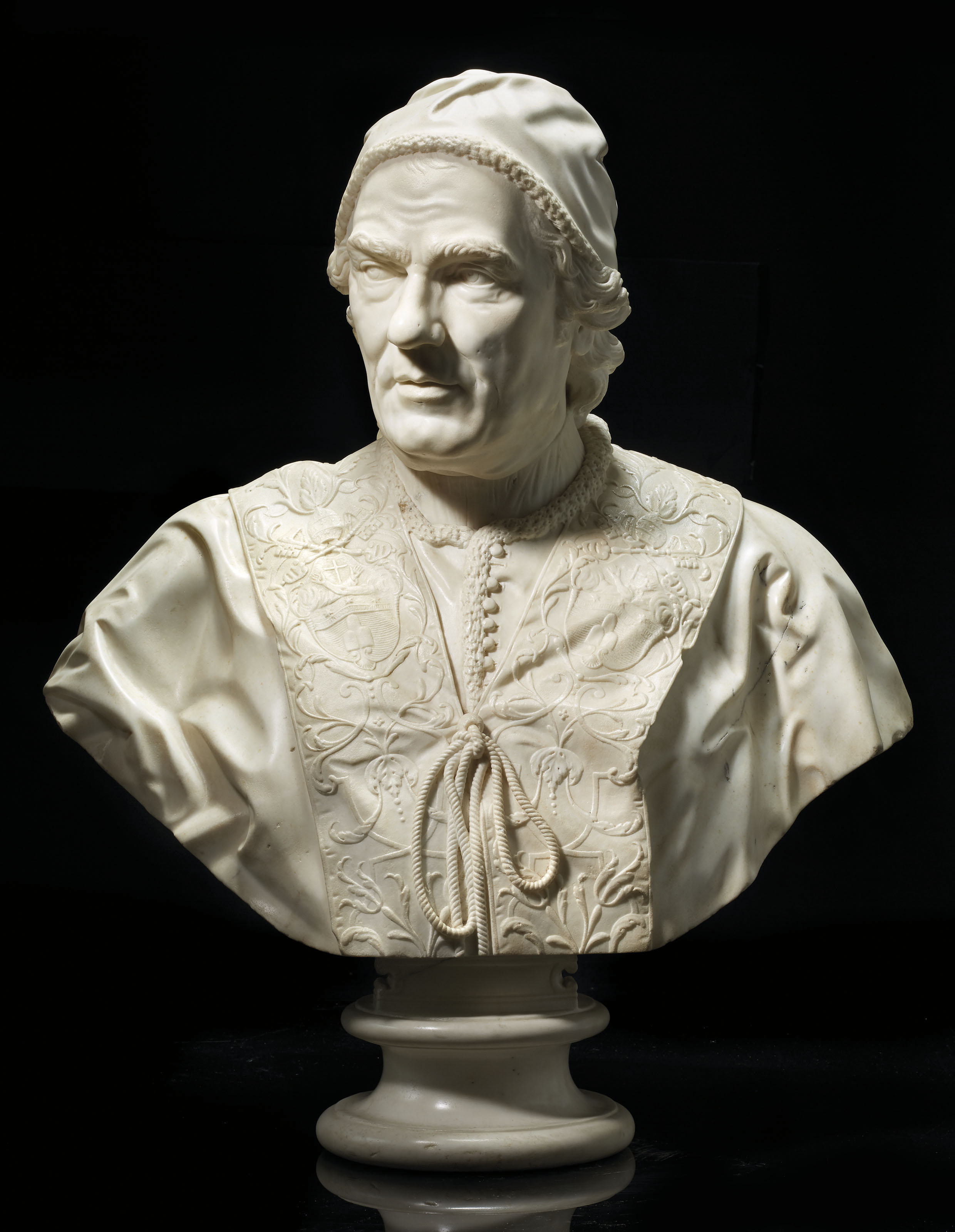 | A WHITE MARBLE BUST OF GIOVANNI VINCENZO ANTONIO GANGANELLI, POPE CLEMENT XIV, (1705-1774, Pope from 1769) | |