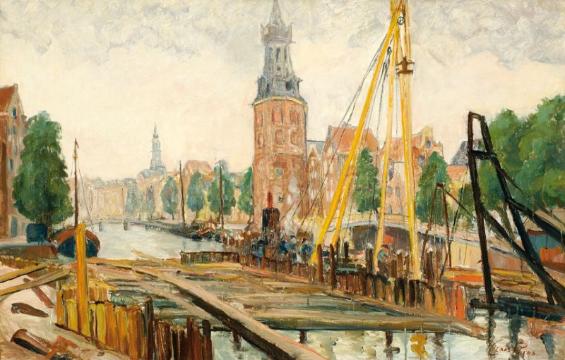 Heiwerk bij de Montelbaanstoren in Amsterdam