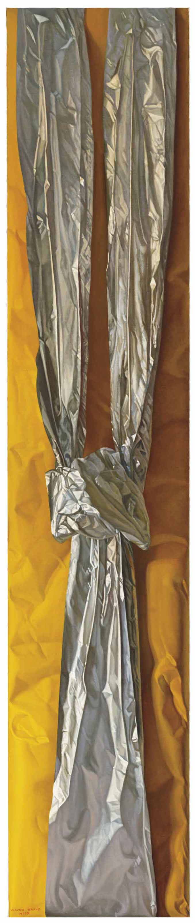 Papel aluminio plata sobre tela amarilla