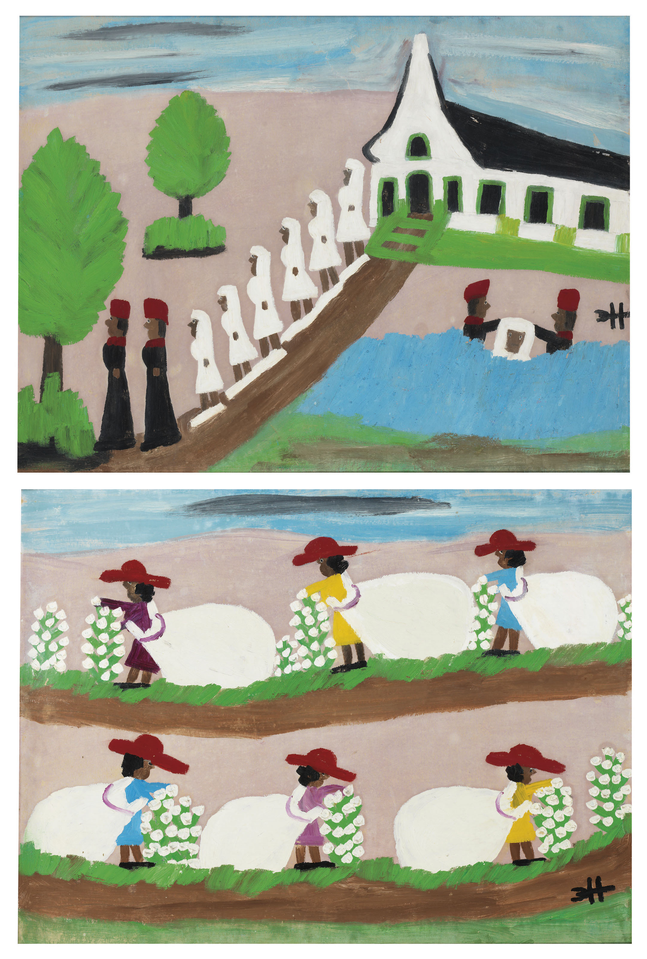 | Picking Cotton and Leaving Church, 1970s, two paintings | |
